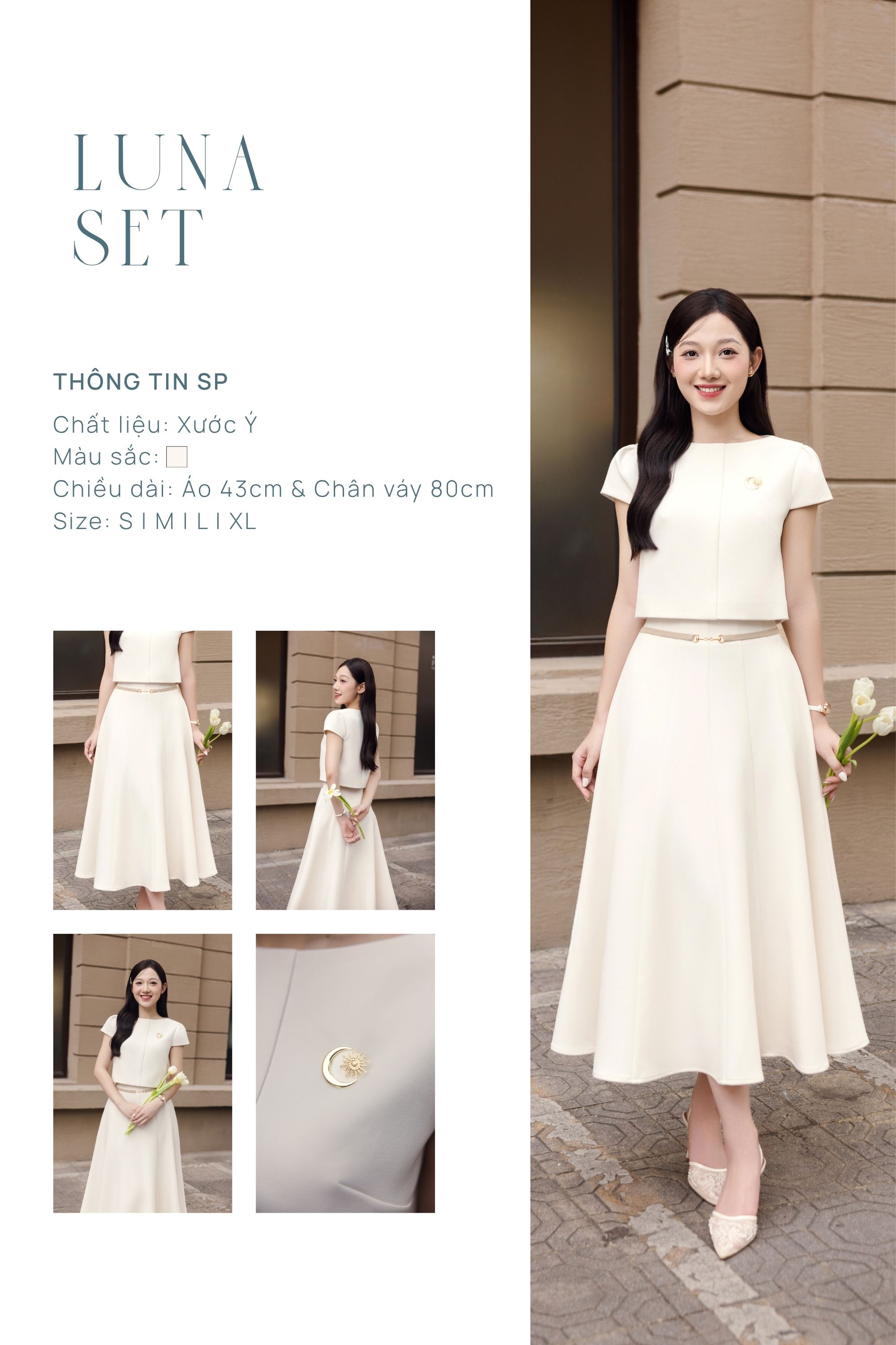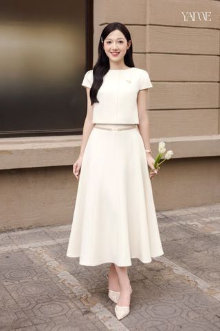Set Áo Dáng Crop Tay Hến Phối Chân Váy Dài YAME YS747
