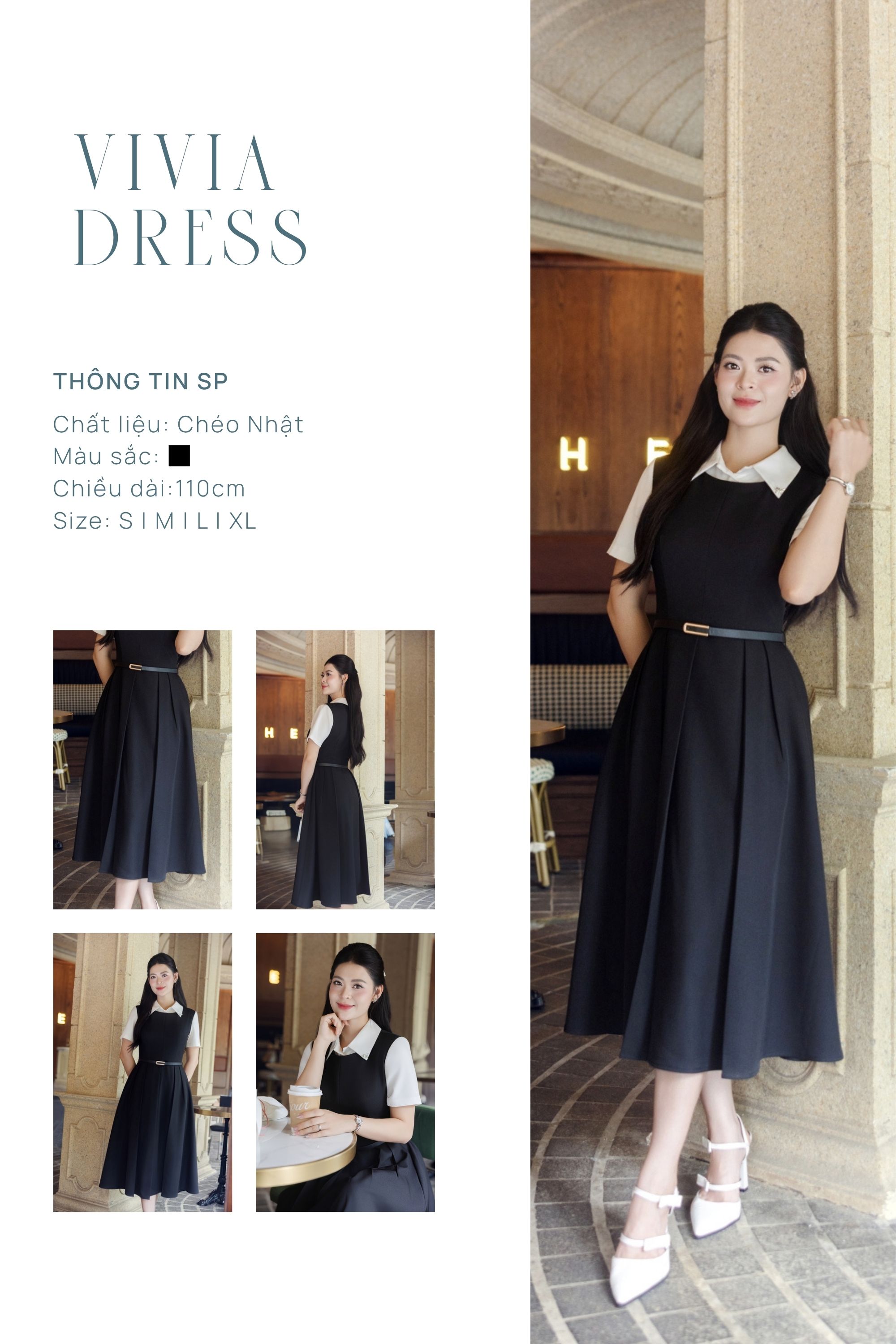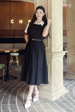 Váy Thiết Kế Cổ Sơ Mi Đính Đá Dáng Xòe YAME YV720