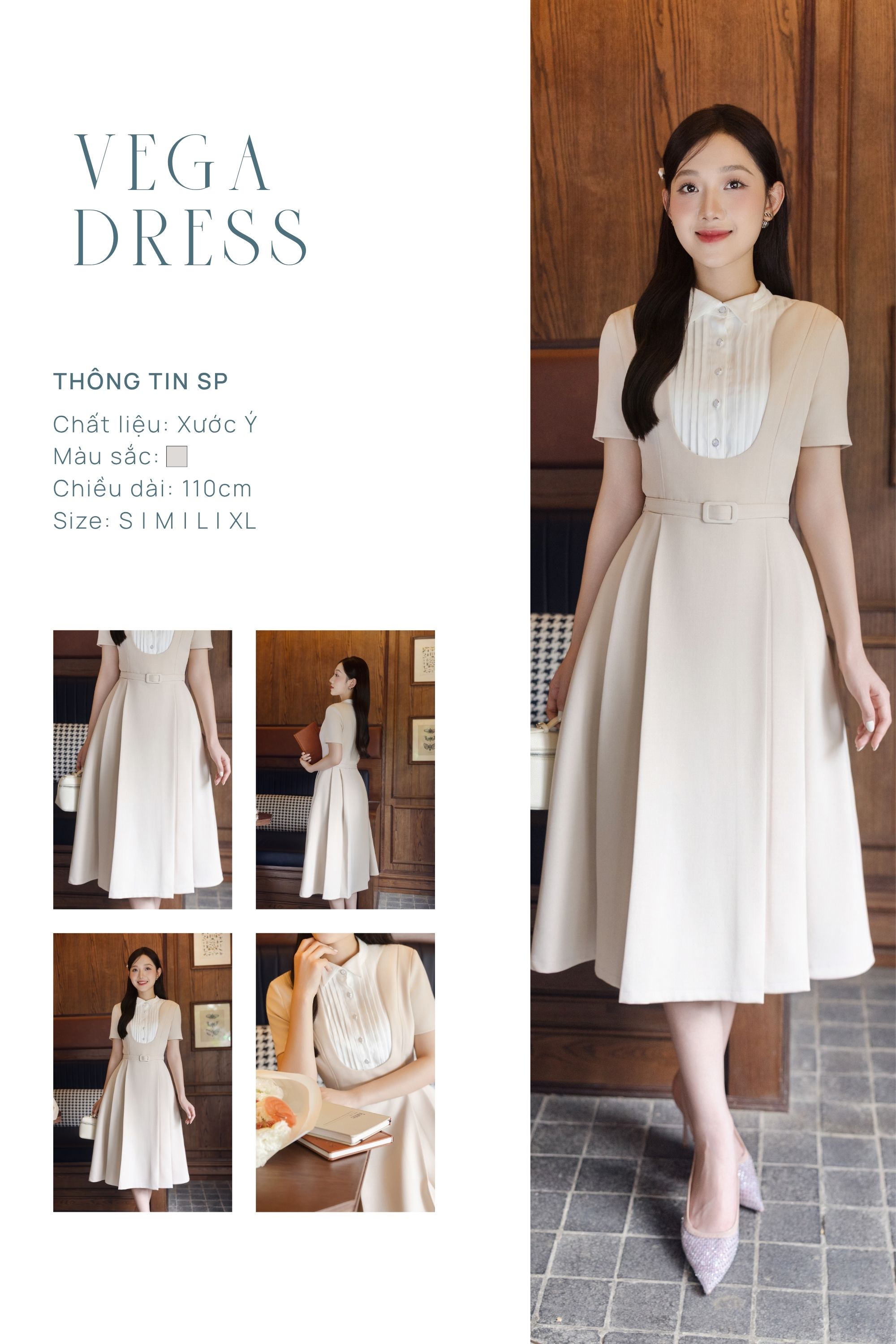 Váy Thiết Kế Màu Kem Phối Ngực Xếp Ly Trắng YAME YV746