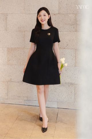Váy Thiết Kế Ngắn Tay Tùng Bồng Cổ Đính Đá YAME YV745